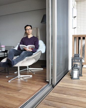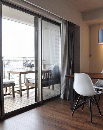 「ベランダとリビングがフラットにつながることで、すごく広々とした空間になりました。すごく気持ちが良い!」と笑顔で話す奥様。あたたかい季節になると、ご家族でランチをしたり、夜はボーっとワインを飲むなど快適に活用されているそう。