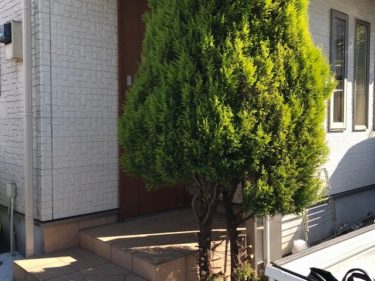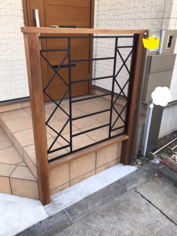 植栽は伐根して、コンクリで埋め、アイアンのシンボルフェンスを設置しました。デザインはお客様と一緒に考えました!シンプルなデザインでオリジナルだから良い思い出になりますね!
