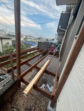 ウッドデッキをリフォームしたい。 目線を隠したい。 赤渋がでない木材を使用したい。