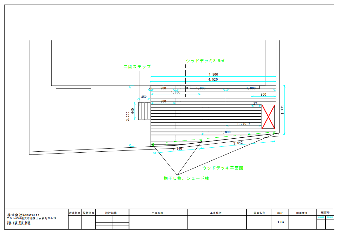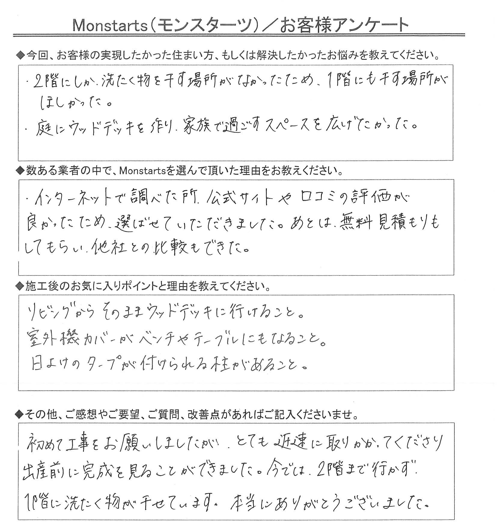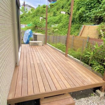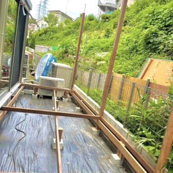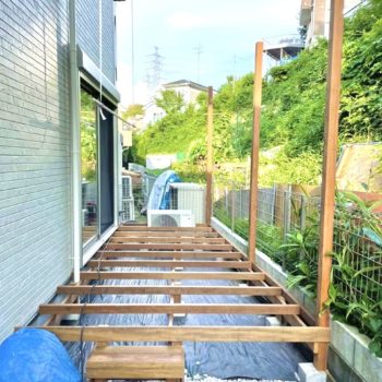 横浜市戸塚区 洗濯物も干せる!柱を伸ばしたウッドデッキ