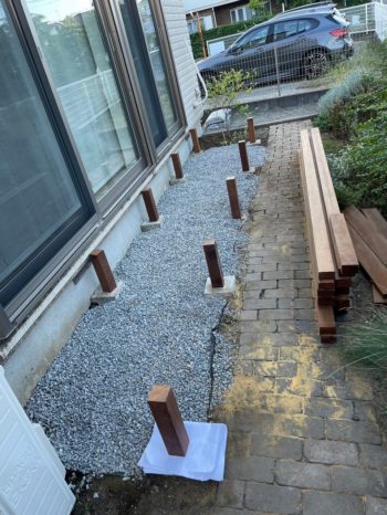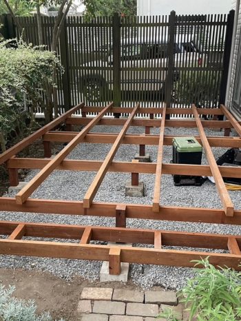 ウッドデッキも脚を組んで行きます。