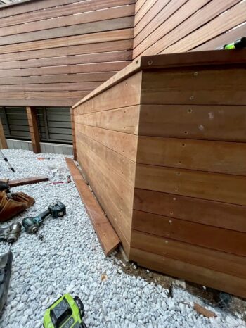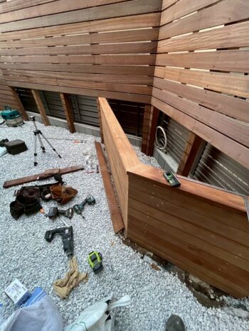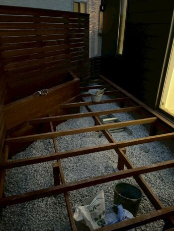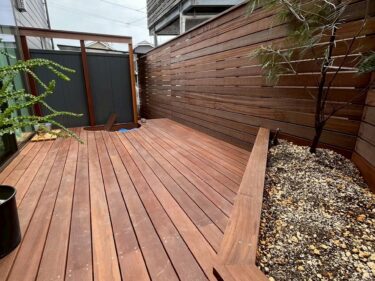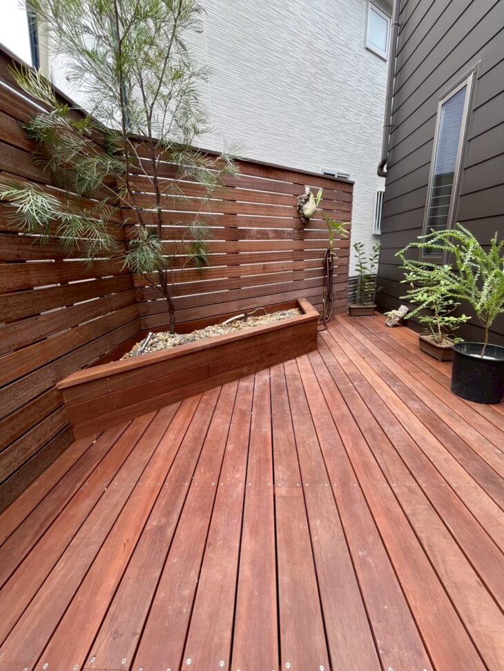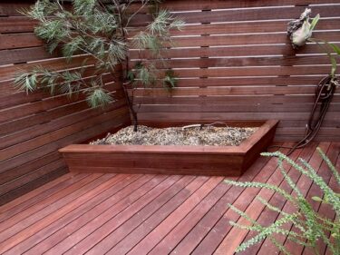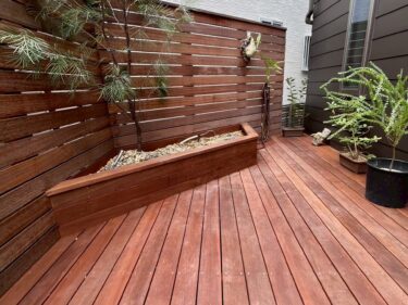 庭をウッドデッキにしたい。 植物を植えられるコーナーを作りたい。