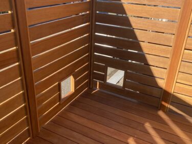 敷地に干渉しないようにデッキに入れ込むような形でステップを作りました。