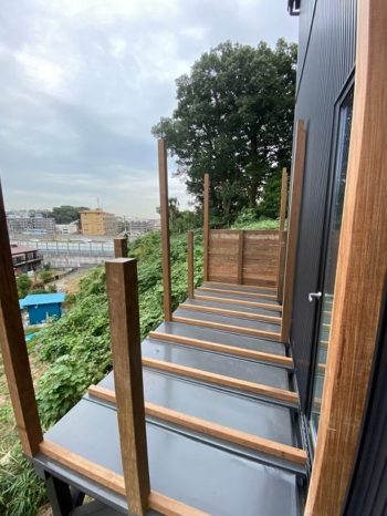 もともとデッキ設置用に設計されていたので、鉄骨部分はすでに設置済でした。
