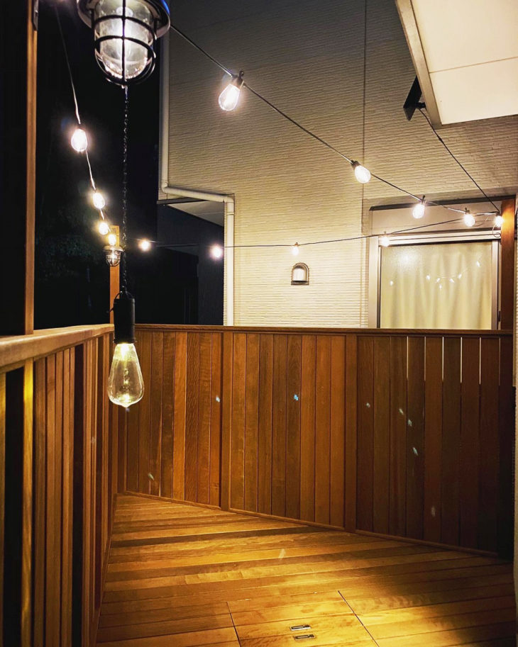 夜の雰囲気も素敵ですね!お客様から送って頂きました。ライトアップは冬のデッキを楽しむ方法ですね!