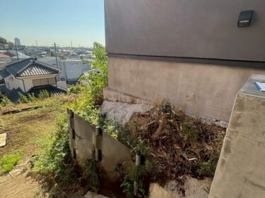 現地は高低差のある敷地で、雑草も多く管理が難しい状態。