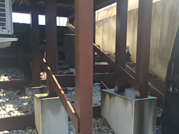 腐食したウッドデッキが気になるので、今度は色褪せしにくく作り替えたい、階段を駐車場側にいれてほしい、段差をなるべく低くしたい、ガレージ屋根の防水処理をしてほしい、室外機の移設とカバーを作製してほしい、という5点のご要望がありました。 腐食したデッキの交換を検討しており、インターネットホームページから相談のご依頼をいただきました。