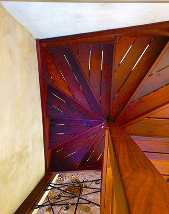 螺旋階段にすることで、通常の階段を作るより狭いスペースでの設置が可能になりました。