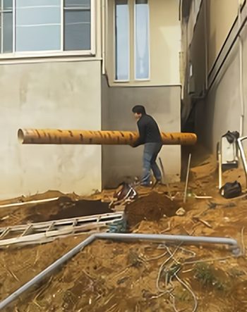 ボイド管を入れて鉄筋を入れ、コンクリート打設作業を行います。