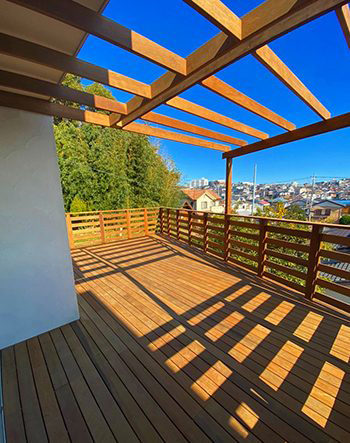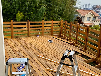 | 施工内容 | 中古物件購入にともなうウッドデッキの新設/傾斜地ウッドデッキ |