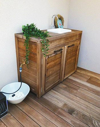 また、ウッドデッキで快適に過ごしていただけるように、ガーデンシンクを造作し、隣接するお宅にも配慮し、プライベート空間が演出できるようにフェンスを設計しています。
