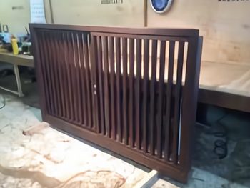 鴨居と敷居と格子引き戸を一つのパーツに作製しました。