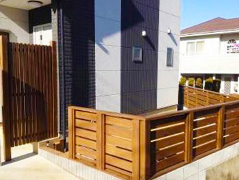 建物のカラーリングと統一感を持たせたウッドフェンスが、デザイン性と防犯性を両立。来客時の印象も格段にアップしました。