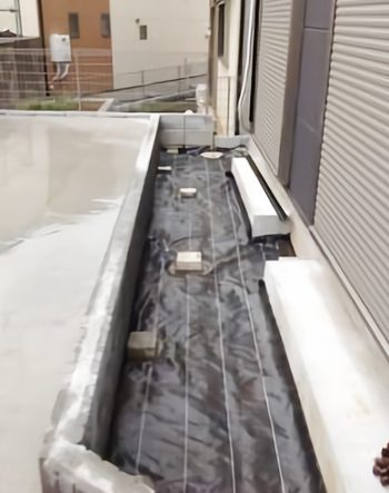 デッドスペース部分に防草シート敷いていきます。