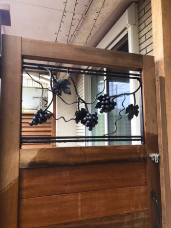 目隠しというポイントを重要視して、全面ルーバーフェンスをご提案。風の抜けはありながら完全に視界がさえぎられるデザインです。目隠しをしたいというお客様にオススメしております。また、外からの動線もあると便利でしたので扉を設置。その扉にはひと手間、ひとデザイン。お客様と打ち合わせしてぶどうをモチーフとしたモニュメントを設置することにしました。少しの工夫でオリジナルのデッキが完成しますね!