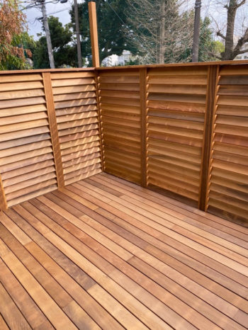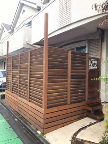 戸建ての駐車場に、ウッドデッキを作りたいと思っています。目隠しとなるフェンスは必ずつけたいというご希望でした。