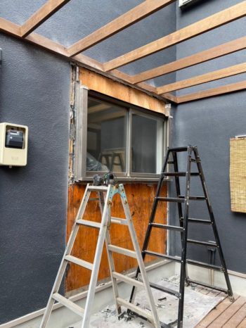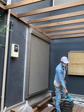 サッシリフォームが完了したら、パーゴラの組立へ移ります。