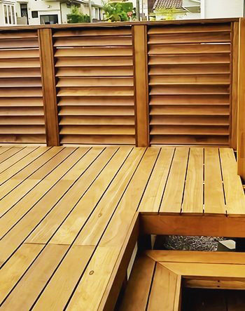| 施工内容 | 車庫上デッキ/ウッドデッキ/アイアン室外機カバー |