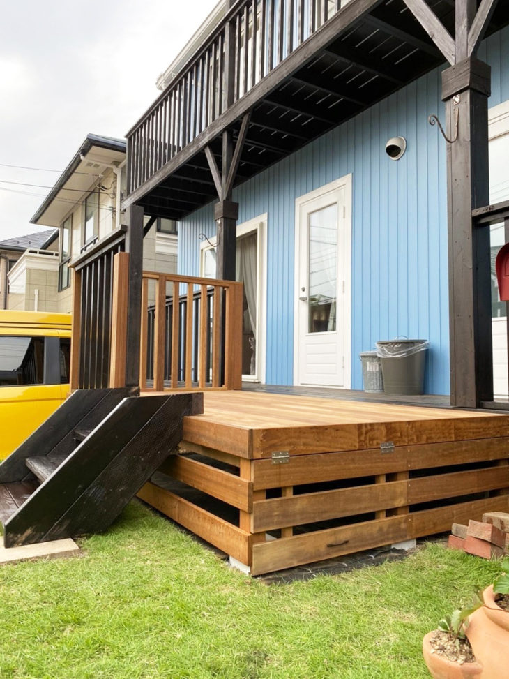 いまあるデッキをできる限り活かすべく、補強が必要な箇所には補強を入れ、ご希望だったデッキの増床もご希望に合わせたプランを設計しました。既存のお客様からもご希望だった、もともとあるデッキの雰囲気を残しつつ、使える部材は有効活用したいというご希望に合わせて、ステップ、フェンスを生かして拡張しました。