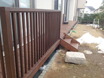 | 施工内容 | ウッドデッキ/フェンス/ステップ/室外機カバー/立水栓の取り換え |