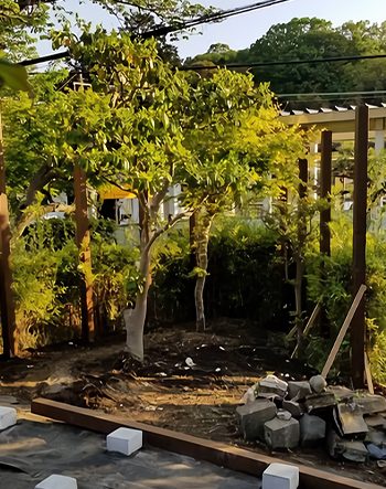 | 施工内容 | ウッドデッキ/ウッドフェンス/オリジナルアイアン扉 |