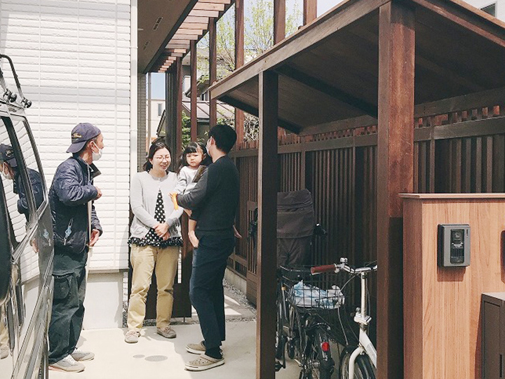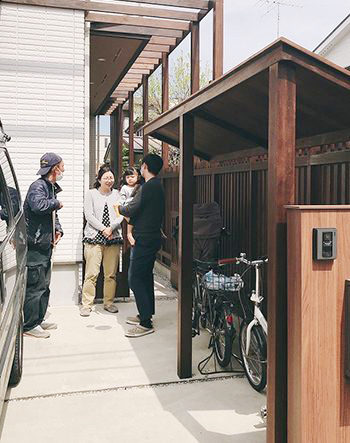 また、サイクルポート(自転車置き場)を製作して、導線もよく、よりプライベート空間をご提案しました。