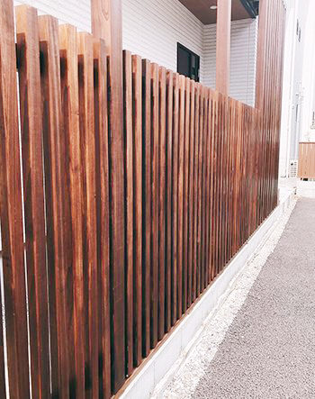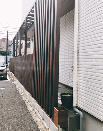 完成しました!高さのある縦格子で、シンプルでかっこいい仕上がりになりました。目隠しの機能を保ちつつ、意匠性にもこだわりました。