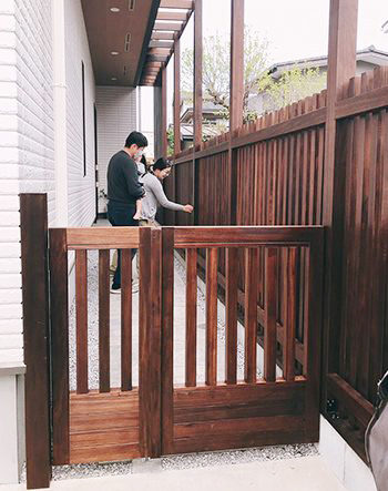 玄関前のフェンスはしっかりと上まで隠れています。出入りはしっかり隠したいですね。