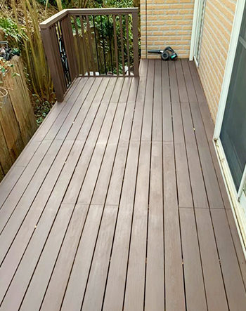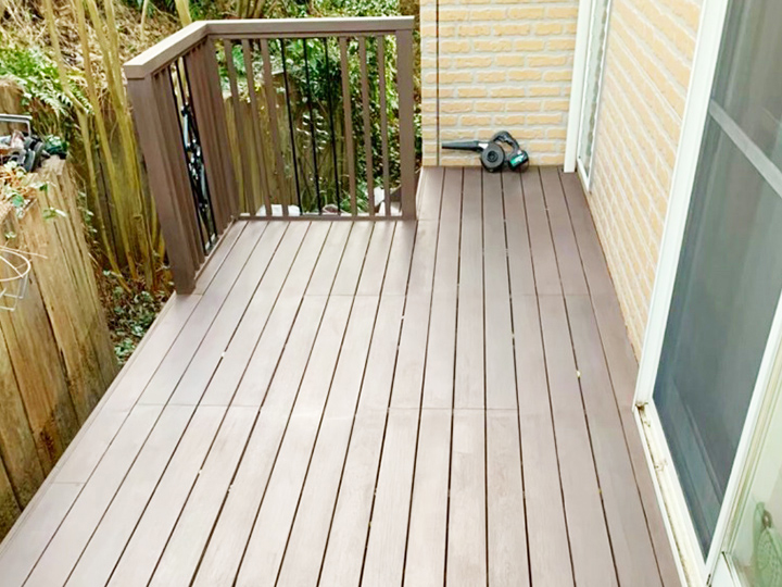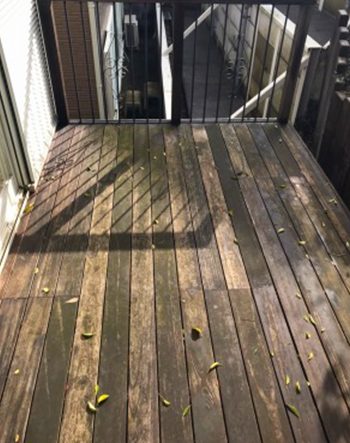 弊社で製作したウッドデッキがシルバーグレーに変わってきたため、塗装をしたいとのご要望でした。